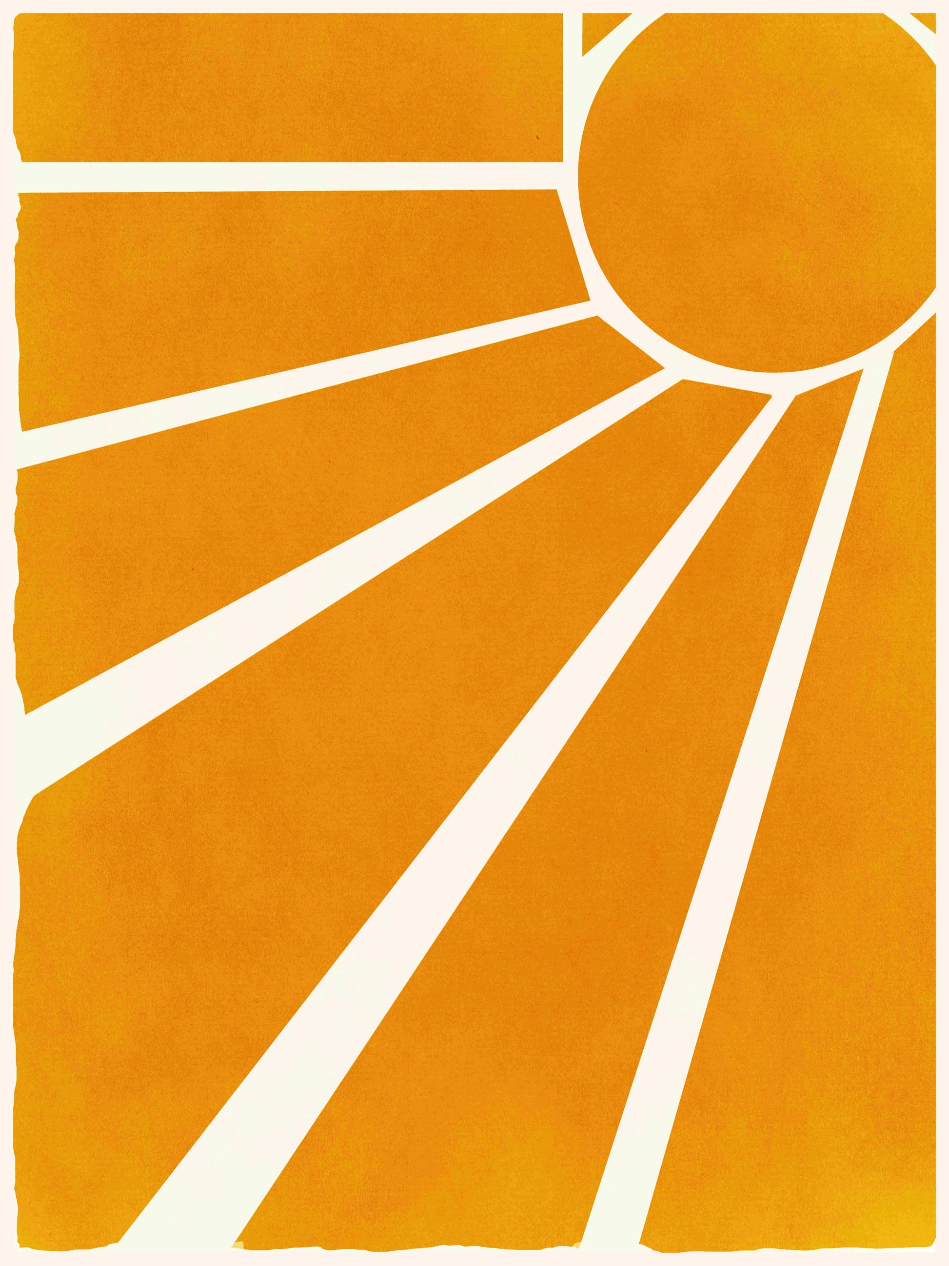 A bold, minimalist illustration inspired by the hit show Heated Rivalry. It features a stylized sun in the upper right corner with radiating beams stretching across a textured orange background.